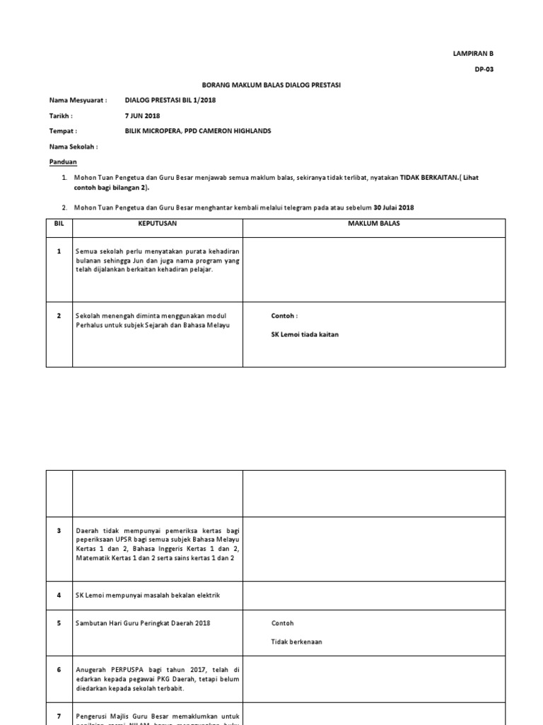 Doc Contoh Maklum Balas Minit Mesyuarat Noryn Samin Academia Edu