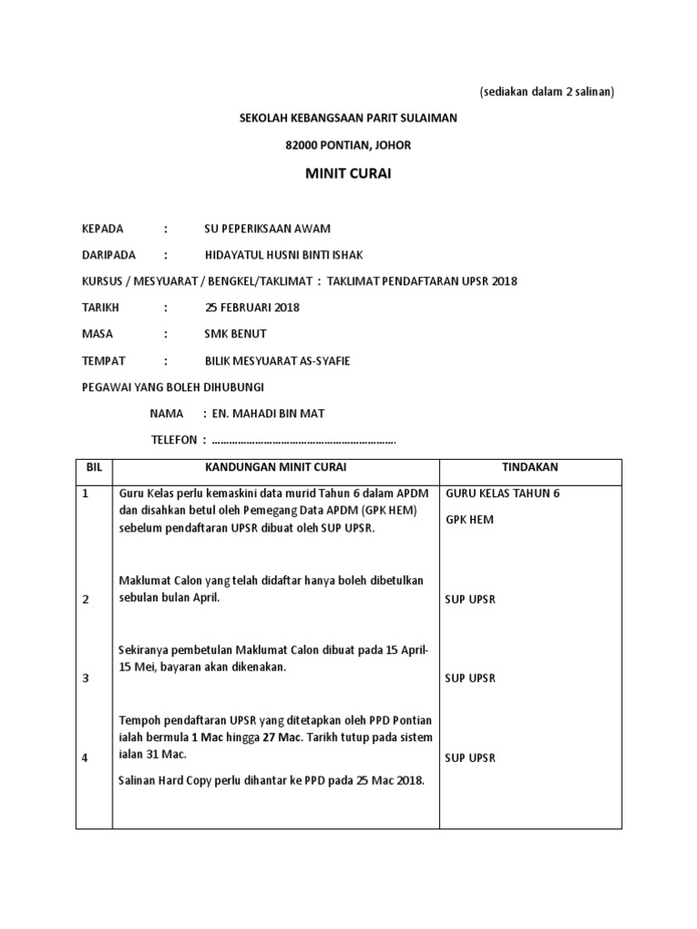 Contoh Dan Format Penulisan Minit Curai Cikgu Ayu Dot My
