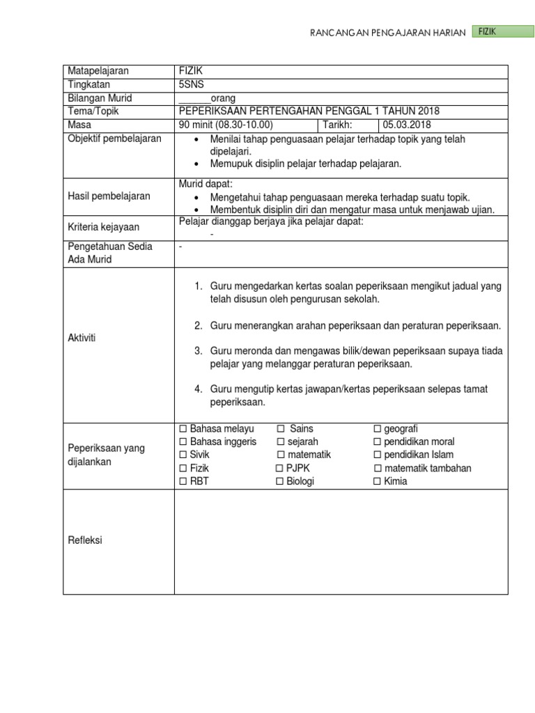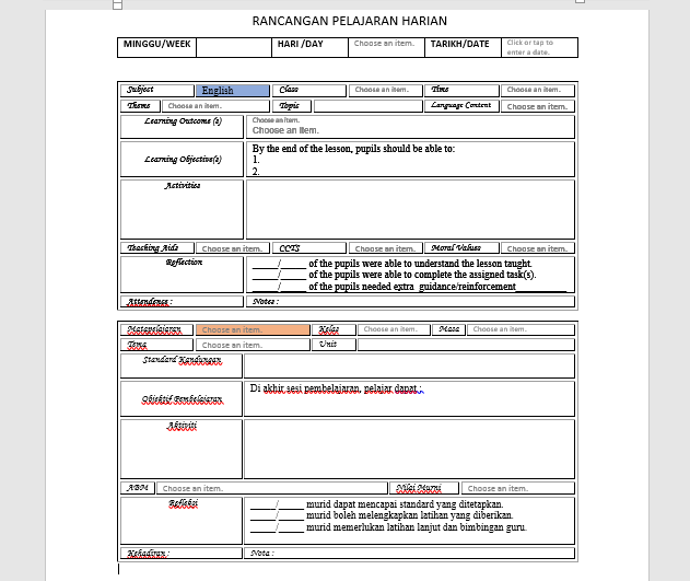 Templat Rancangan Pengajaran Harian Rph Pembelajaran Abad Ke 21 Pak 21