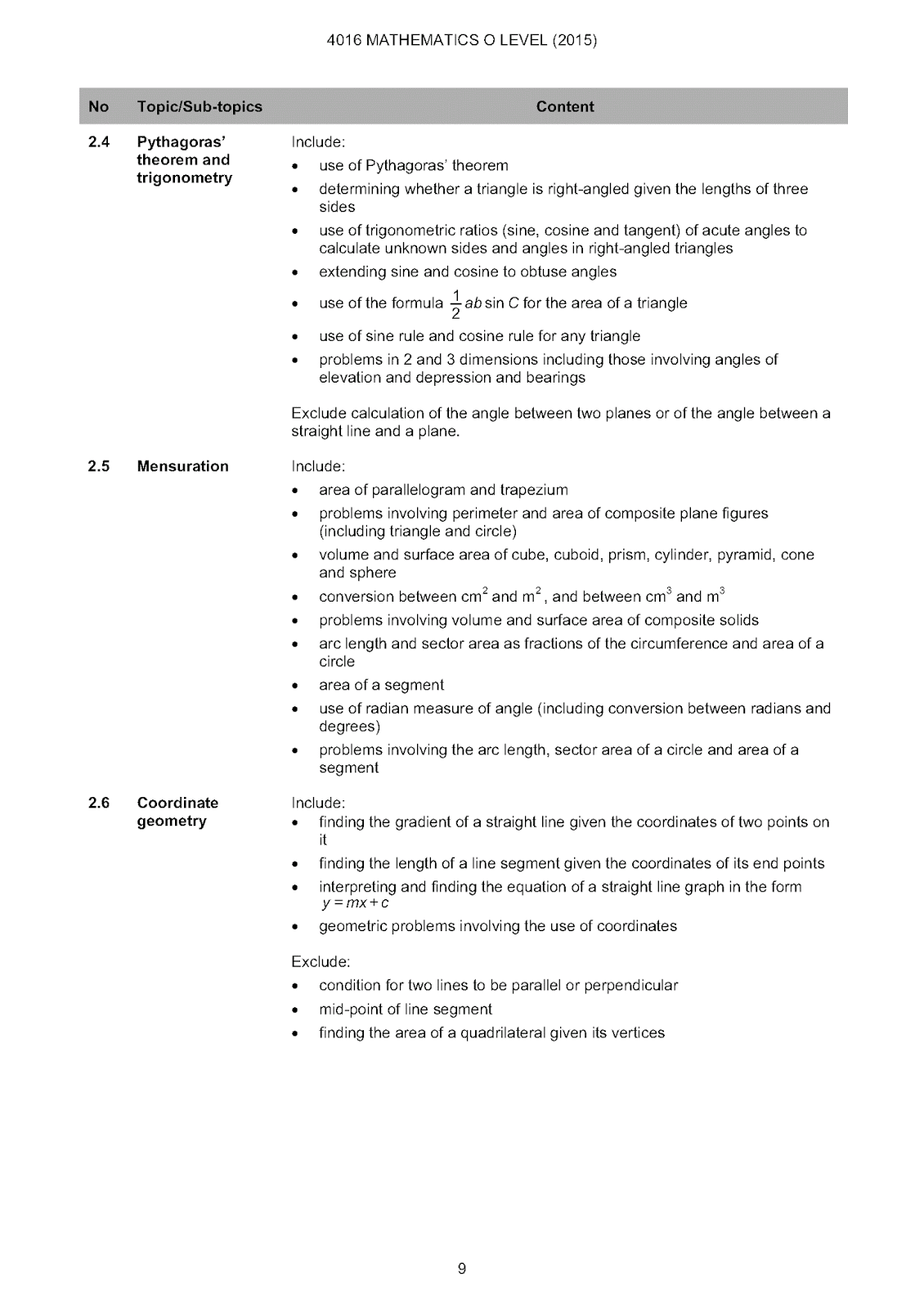 O Level Math E Maths Exam Syllabus For 2015 Singapore Additional Math A Math And Math E Math Blog By An Experience Tuition Teacher