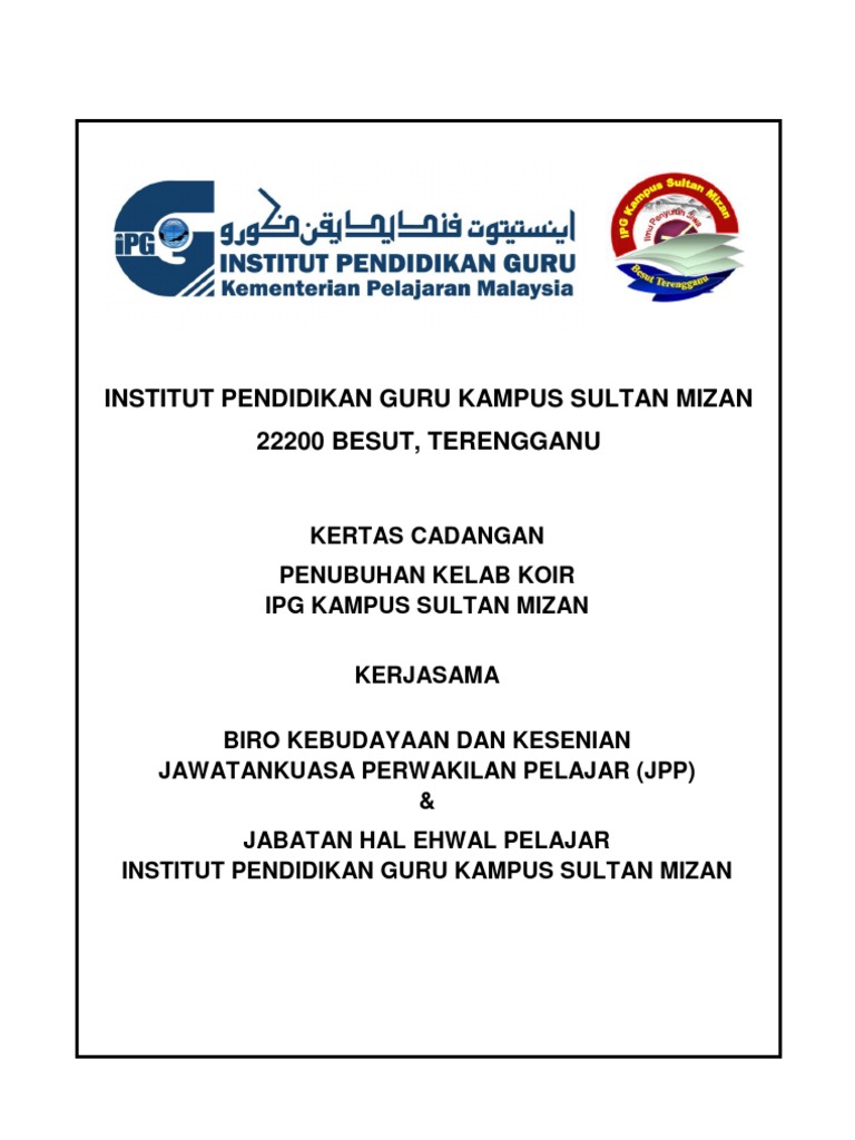 Kertas Kerja Penubuhan Kelab Koir 2013