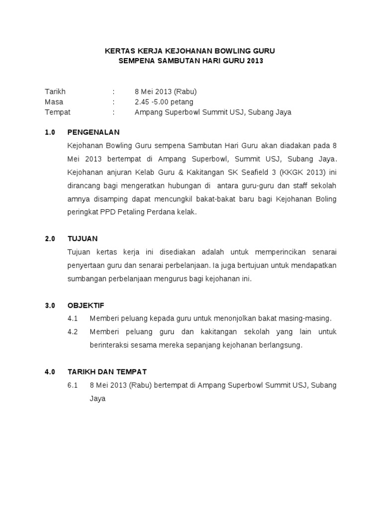 Kertas Kerja Kejohanan Boling Sempena Hari Guru 2013 Doc