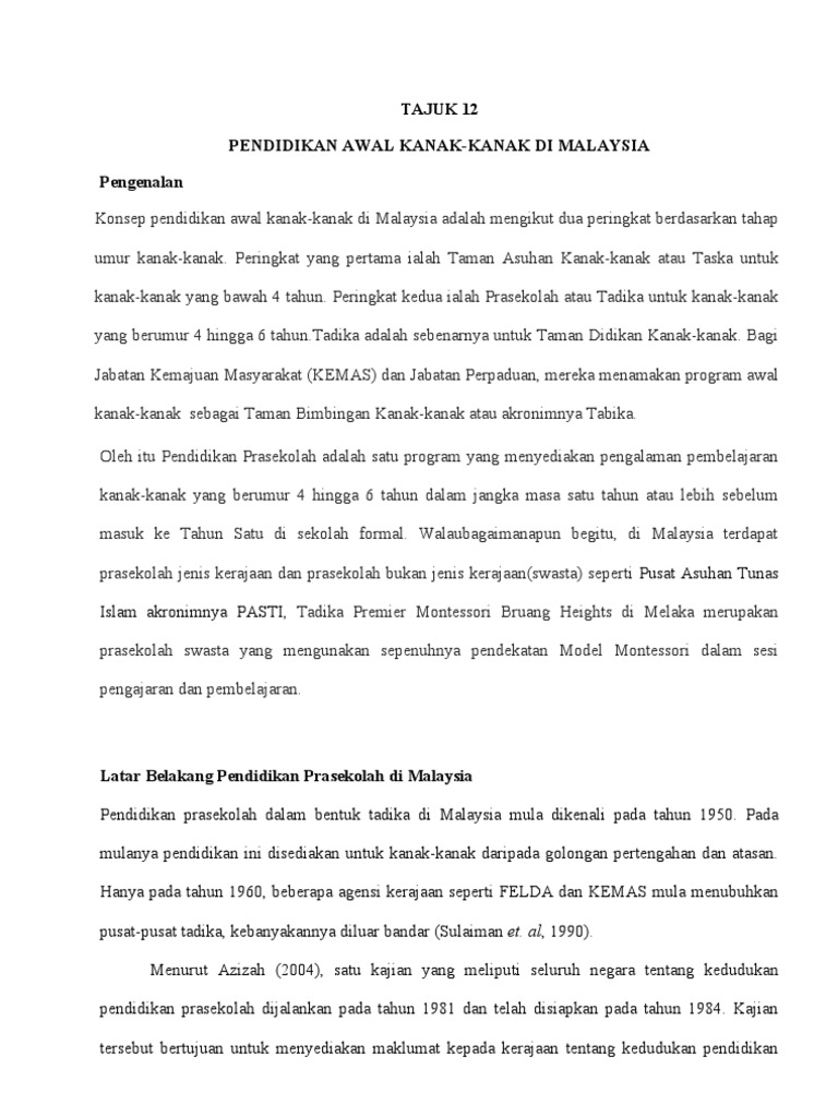 Konsep Pendidikan Awal Kanak Kanak Di Malaysia Pakk