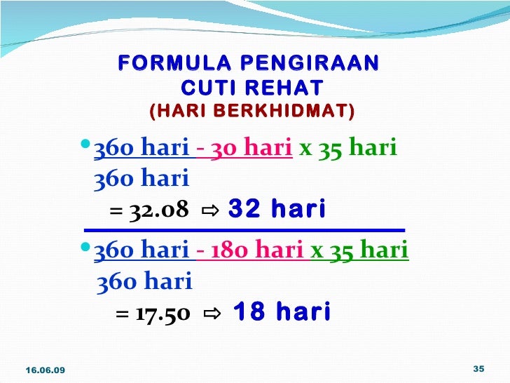 Jadi bagaimana pengiraan gaji harian yang patut di lakukan. Had pengumpulan gcr bagi sesuatu tahun ialah 15 hari setengah daripada kadar cuti rehat yang layak tahun sebelumnya mengikut mana yang kurang. Formula bonus saraan tambahan 2004. Maksud ganjaran gantian cuti rehat ialah ganjaran ataupun bayaran yang diperolehi daripada jumlah cuti yang terkumpul yang tidak digunakan oleh pesara kerajaan.