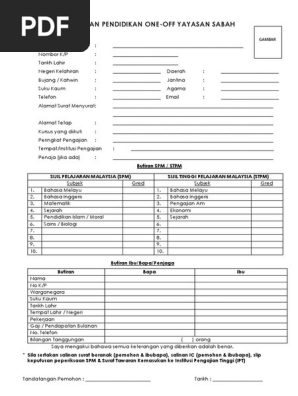 Borang Bantuan Pendidikan One Off Yayasan Sabah 2018 1 Pdf