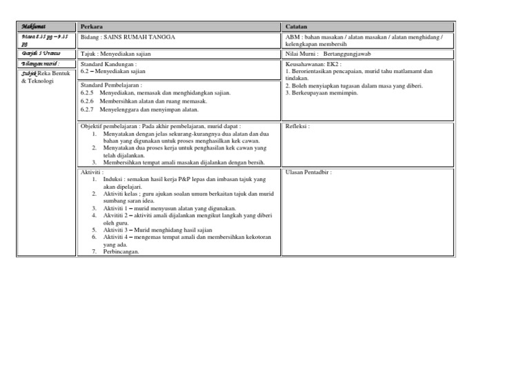 Sains rumah tangga tarikh standard standard pembelajaran tp standard prestasi catatan minggu kandungan tafsiran emk. 29 30 6 2 3 memilih menu sarapan ek 1 peka kepada peluang 6 2 menyediakan sajian. Sebelum pergi lebih jauh apa kata admin terangkan dulu serba sikit mengenai dskp ini.