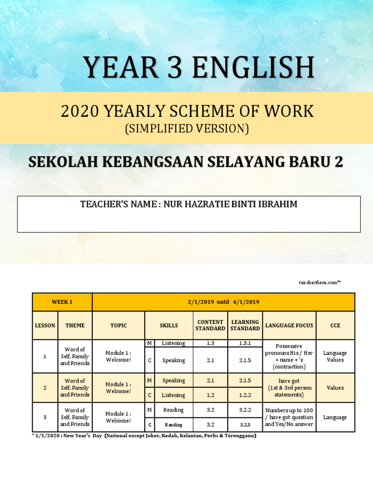 Teacherfiera Com Y1 Y2 Y3 Yearly Scheme Of Works Editable Simplified Version 2019