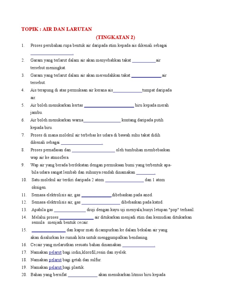 Sains Tingkatan 2 Bab 5 Air Dan Larutan