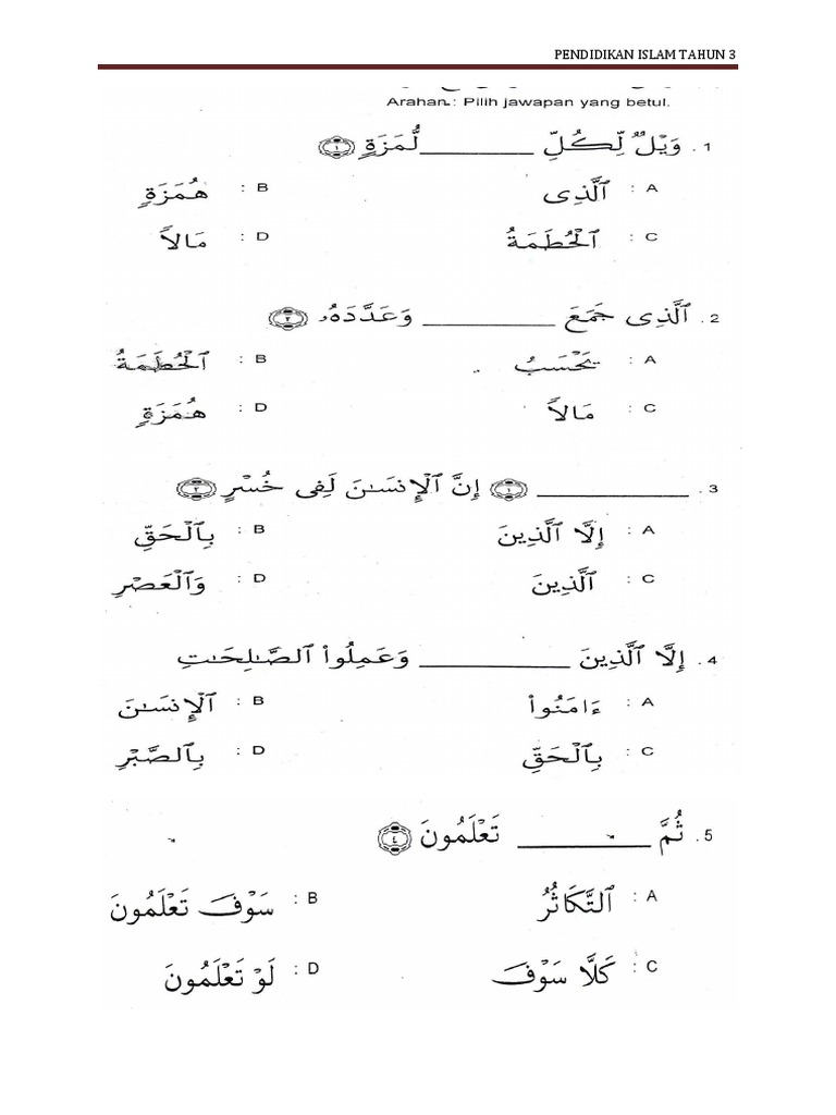 Soalan Peperiksaan Akhir Tahun Pendidikan Islam Tahun 3