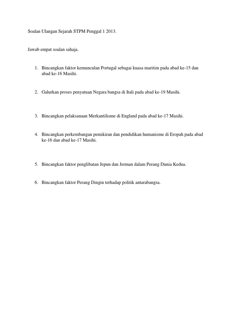 Soalan Ulangan Sejarah Stpm Penggal 1 2013