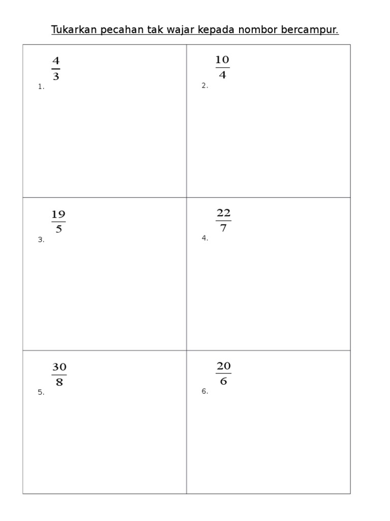 Tukarkan Pecahan Tak Wajar Kepada Nombor Bercampur Docx