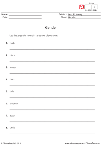 Ks2 English Resource Gender Teaching Resources